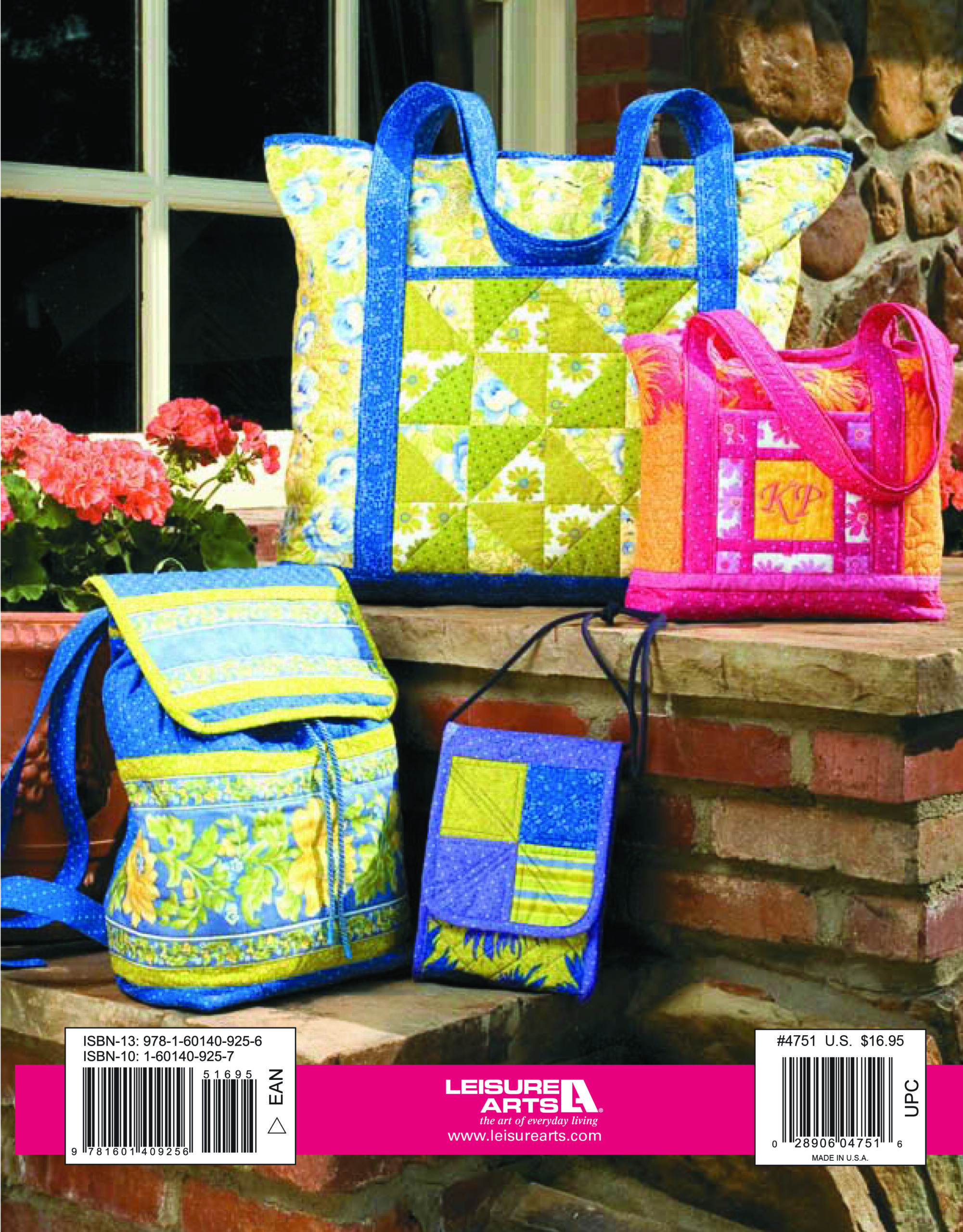 $9.99Leisure Arts Sew And Go Totes Quilt eBook- Just say "no" to the question "paper or plastic". Whether you are needing to tote groceries, art pads and supplies, gym clothes, books or even diapers, a quilted bag can handle the job. Make a pocket-size accessory bag, an oversize duffel, a feminine handbag or a backpack you'd be proud to take anywhere. All of these and more are included in the 9 projects in this must have book. 84 pages, PDF download.