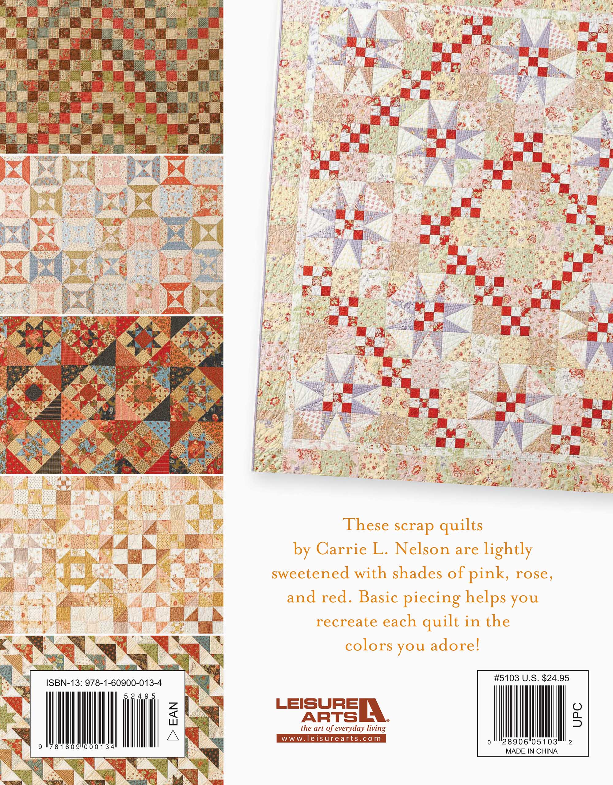 Leisure Arts Touch of Rosie Quilts eBook- An enchanting collection of 14 quilt projects inspired by designer Carrie Nelson's golden retriever Rosie. Each design takes on unique patchwork pattern, including large and small stars, pinwheels, checkers and more. Designs include: full bloom, high cotton, summer wind, don't be cruel, hound dog, Luci in the sky and more. Most designs are made through a combination of pieced blocks and row construction. Finished quilt sizes range between approximately 69 1/2"x 69 1/2" and 85"x 85". 114 page PDF download.