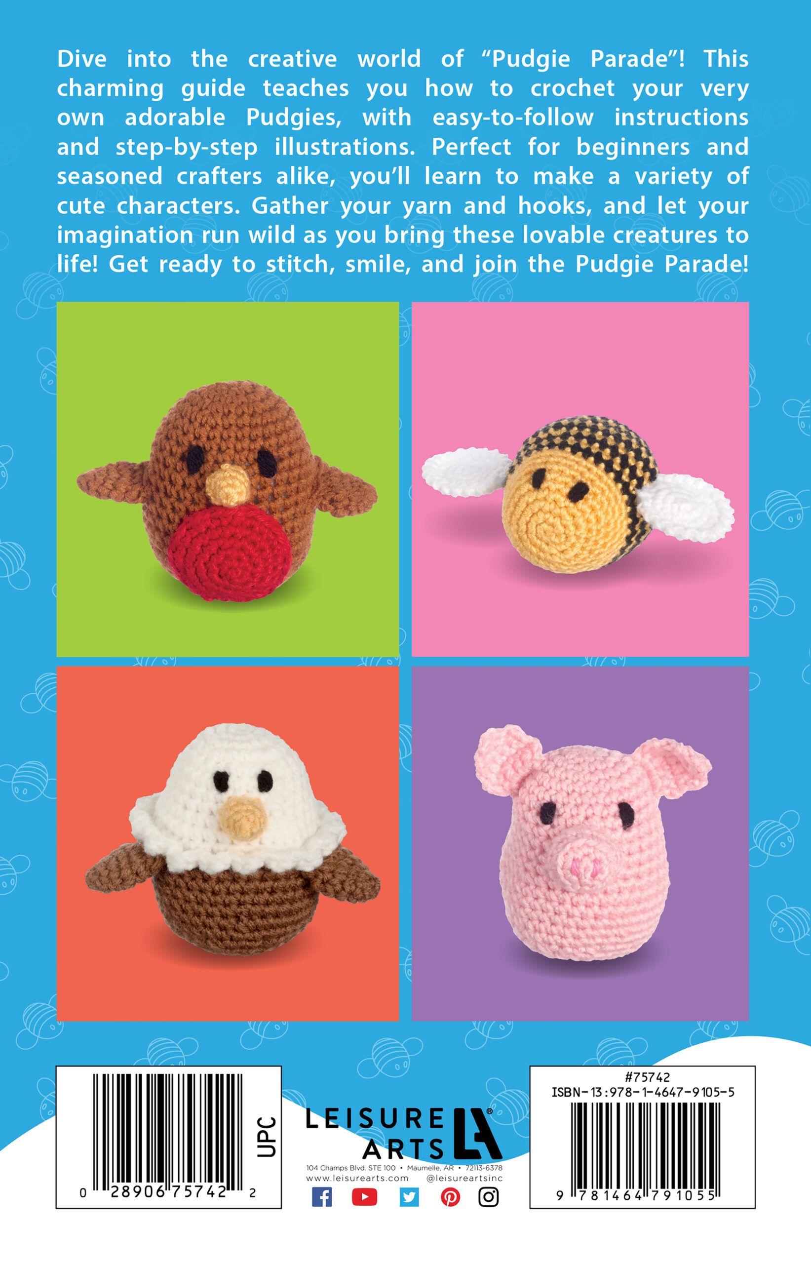 $6.99Pudgie Parade Crochet- Bring your creativity to life with the Pudgie Parade Crochet eBook. This fun collection features a lineup of adorable, plump characters that are sure to charm crocheters of all skill levels. Each pattern is designed to bring a smile to your face as you stitch your way through these 8 lovable designs. Perfect for beginners and experienced crocheters alike, this offers clear, easy-to-follow instructions, and helpful tips. Start your crochet parade today and create your own huggable ladybug, bird, eagle, lamb and more. 48 pages in a softcover.