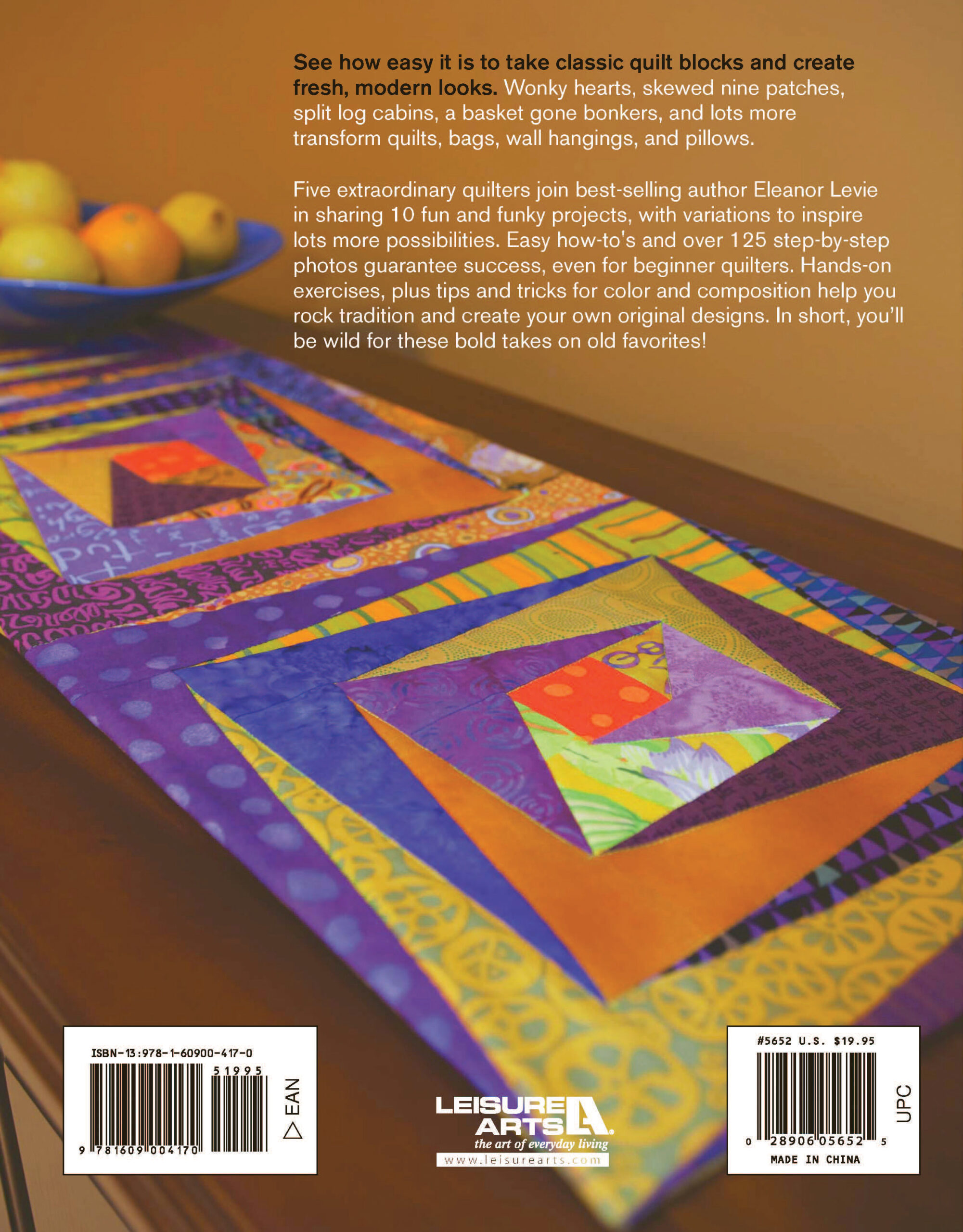 $19.95Quilt Blocks Go Wild- Take a tame, familiar quilt block and unleash it to create a fresh, modern look. Gorgeous photos make you gaga for wonky hearts, skewed nine-patches, a crazy-quilted star, and more. Guided by easy how-tos and more than 120 step-by-step photos, even beginning quilters can make super-cool pillows, quilts, wall hangings, and bags. There are also plenty of hands-on extras: tips and tricks for color, composition, and design, plus workbook sections that offer lots of jumping-off points to tweak tradition and create your own original blocks. Projects include: nine-patch pot holders, basket motif wall hanging, log cabin table runner, hearts wall hanging and more. Finished projects measure between approximately 8" an 64 3/4" across. Some designs are fat quarter friendly. 64 pages, softcover.