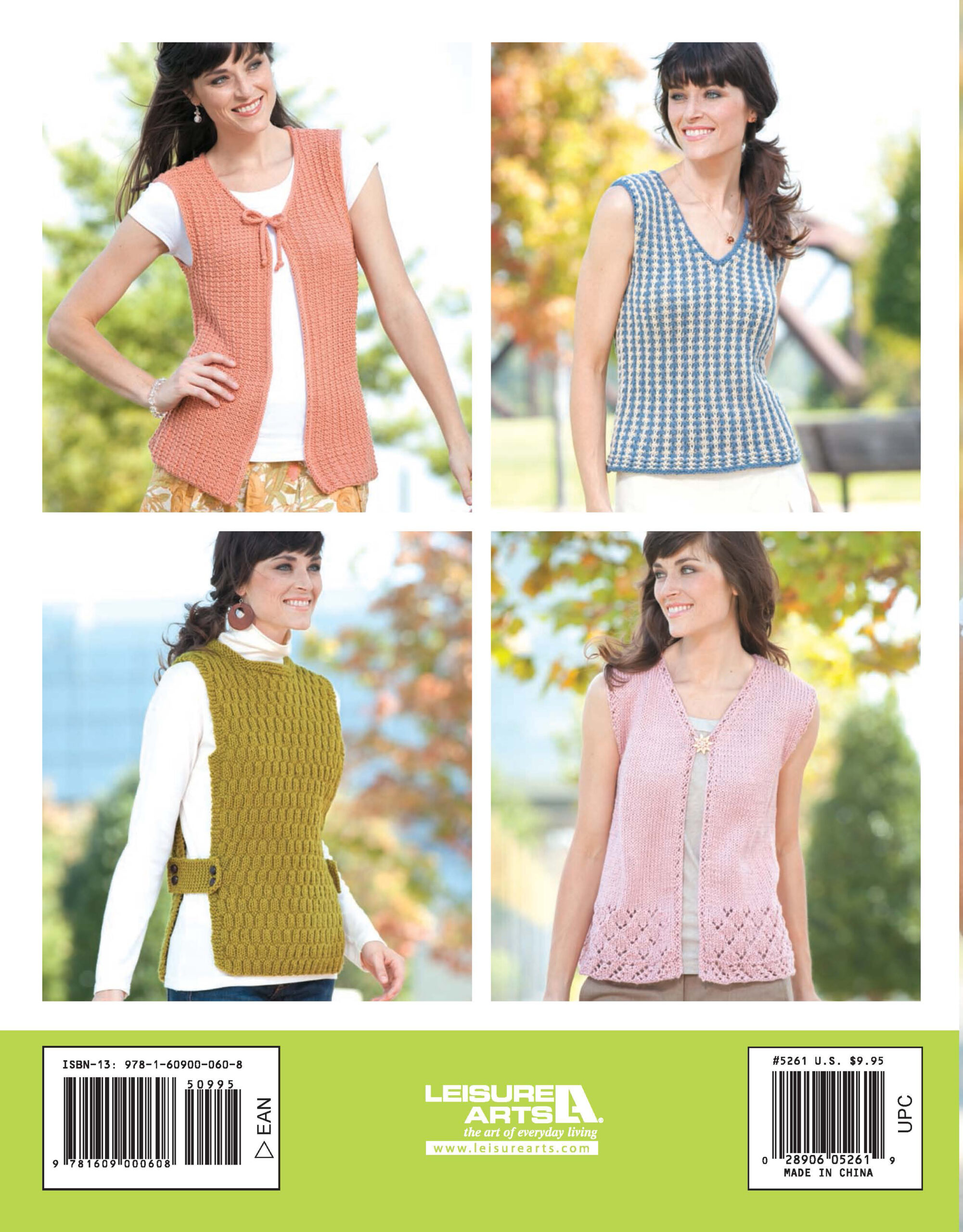 $9.95Fresh Vests to Knit- Boost your wardrobe with these classic knits. Whether you dress them up or down, wear them to work or wear them out with your friends, you'll look amazing and feel cozy in any of these 7 designs. Make them for yourself, for family members, or for friends and know that the quality and style will last forever. Designs include: lighthearted, fresh idea, fun and breezy, and more. Projects can be made using size 4 worsted weight yarn and a variety of straight, double pointed and circular knitting needles in US sizes 7 and 8. General instructions, stitch guides, step-by-step directions, and high-quality photos will have you knitting in no time. Includes sizing options for US women's sizes X-Small through XX-Large; fitting chests measuring between 31 1/2" and 52". Easy to intermediate skill level. 40 pages, soft cover.