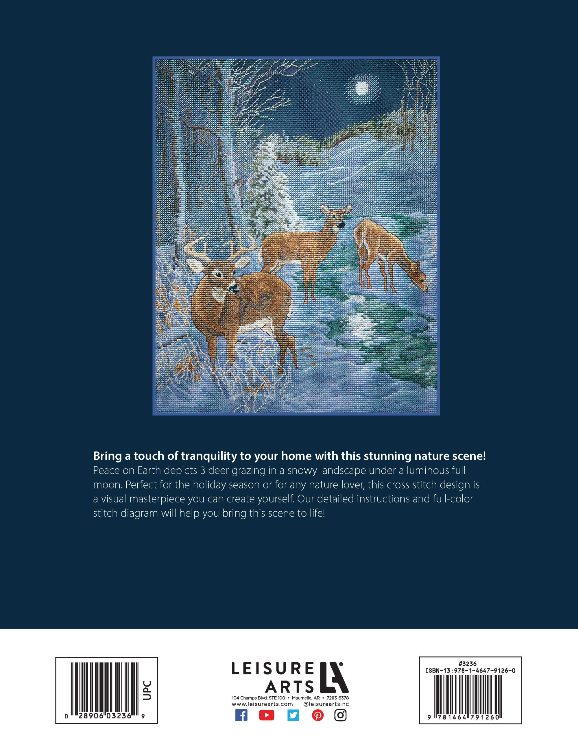 $7.99Peace on Earth - Bring a touch of tranquility to your home with this stunning nature scene! Peace on Earth depicts 3 deer grazing in a snowy landscape under a luminous full moon. Perfect for the holiday season or for any nature lover, this cross stitch design is a visual masterpiece you can create yourself. Our detailed instructions and full-color stitch diagram will help you bring this scene to life. Intermediate 8 pages softcover.