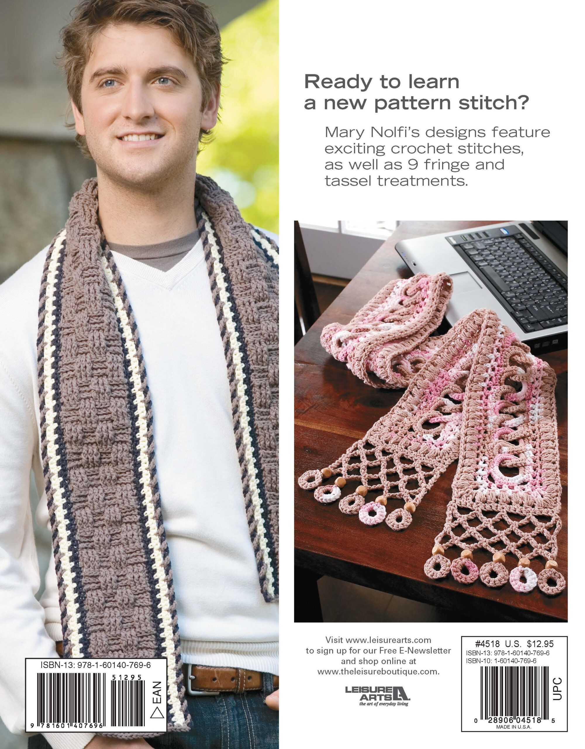 Learn A Stitch Create A Scarf Crochet- You can create a marvelous muffler, scarves, and even a shawl, at the same time you experience the fun of learning new pattern stitches. Just think of all the original afghans, wraps, lap blankets, and bed throws you could fashion with the 22 stitches used in these 12 projects. Plus, there are beautiful fringes, tassels, and other finishing ideas to make all your crochet projects unique. Designs include: tri-color larksfoot scarf, openwork shawl, star stitch sash, Louis xv scarf and more. All projects use size 3 light or size 4 medium weight yarns and US size F-5 through K-10 1/2 crochet hooks. Includes step-by-step instructions for each project and new stitch introduced with full color photos of each stitch pattern. Easy to intermediate skill level. 56 pages in a softcover.