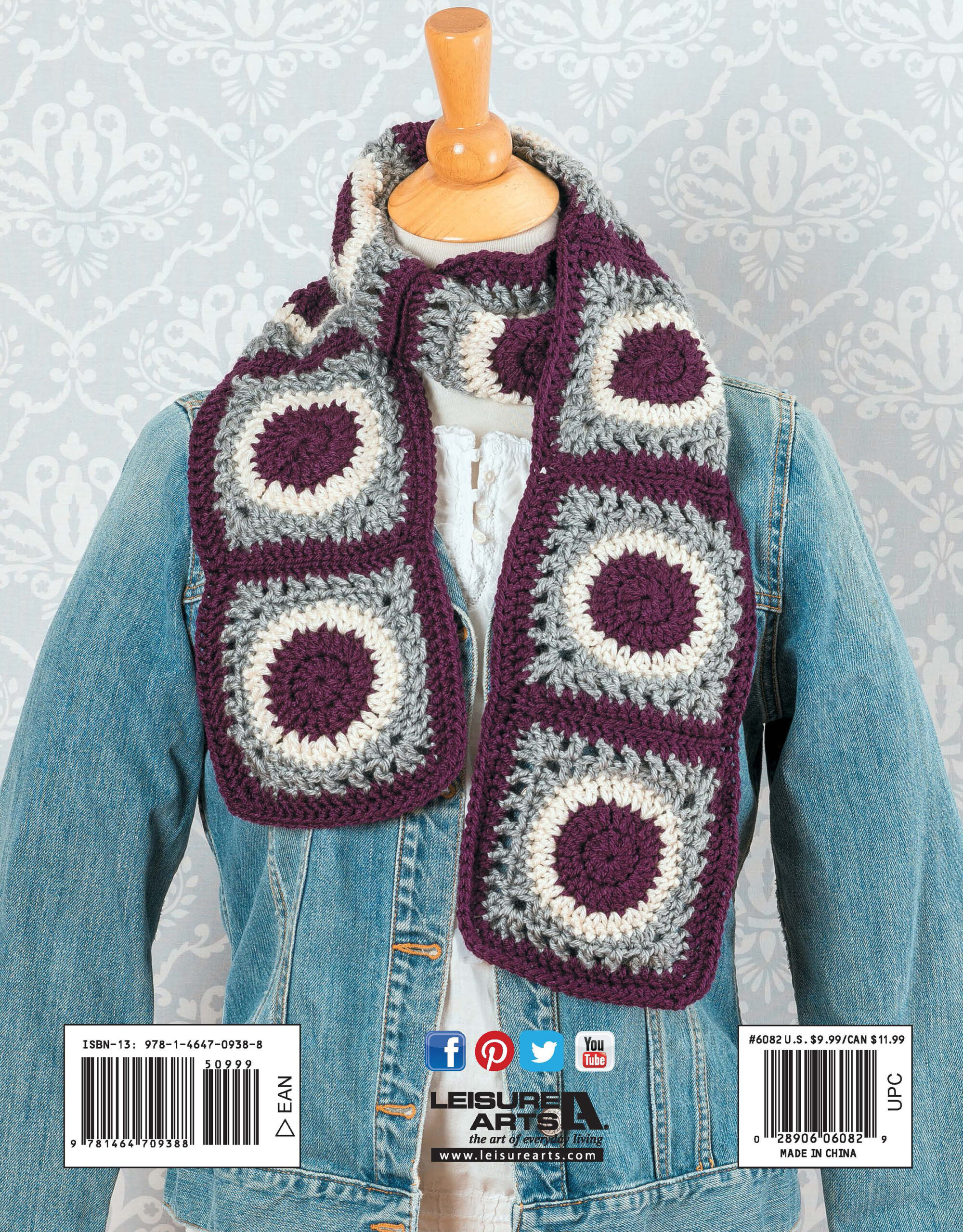 Learn To Crochet Circles Into Squares- Taking a circle and making it into a square is a unique variation on the basic crochet granny square. Once you follow the step-by-step instructions you will be able to accomplish any of the projects in this. So take your pick, from dishcloths to afghans, a scarf or a pillow, and enjoy. Projects call for size 2 fine and 4 worsted weight yarn and crochet hooks in US sizes F-5 and I-9. Includes detailed round by round instructions for each project. Easy skill level. 32 pages, softcover.