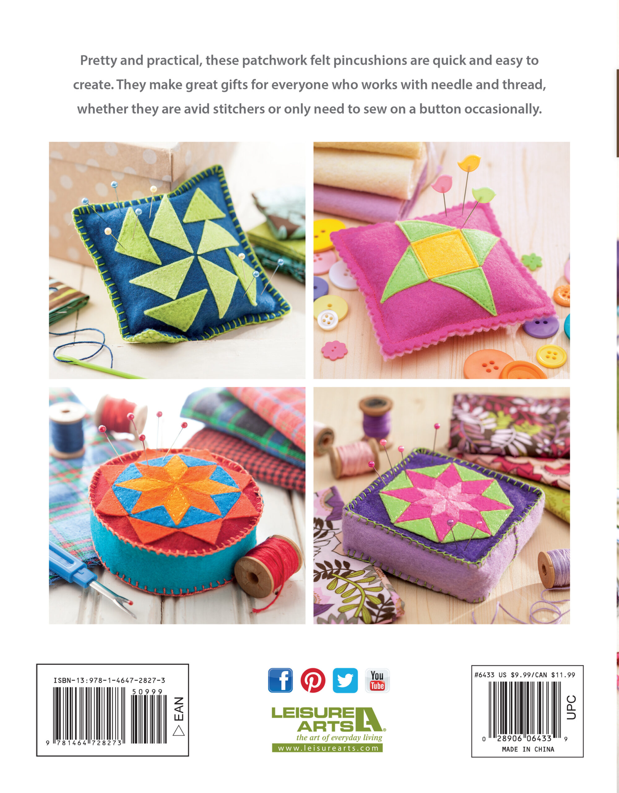 Learn to Create Felt Pincushions- Learn to create with felt by making twelve quilt block inspired pincushions. Designs include: lattice square, friendship star, flying geese, four leaf clover, diamond star, geometrical stars, lily, pole star, western star, mariners compass, bay leaf and sun goddess. Includes a materials list, diagrams, photos, and assembly instructions for each project. General instructions teach you to make the pincushion base with both hand machine sewing techniques. Finished pincushions each measure approximately 4"x 4". Beginner skill level. 32 pages, softcover.