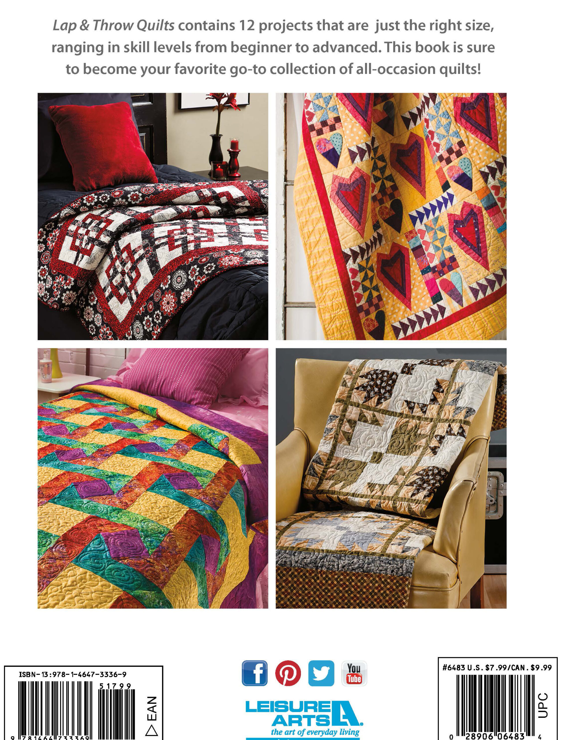 Lap & Throw Quilts- Every style from contemporary to traditional. This contains 12 projects that are just the right size, ranging in skill level from beginner to advanced. It will become your favorite go-to collection of all occasion quilts. Designs include: triangle fever, pretty in pink, puzzle hearts, garden labyrinth, woven links, and more. Each design has easy to follow directions, material lists, diagrams, and pattern shapes when needed. Also includes a general guide to quilting with detailed finishing instructions. Finished quilts measure between approximately 45"x 56" and 74"x 98". Beginner to advanced skill level. 64 pages, softcover.