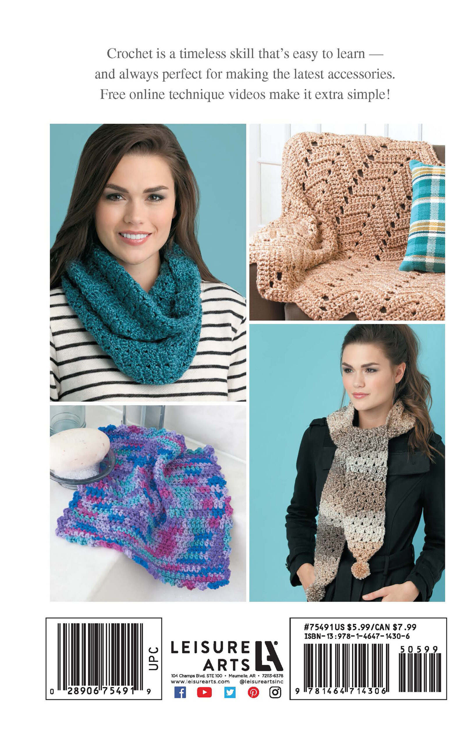 Learn To Crochet- Crochet is a timeless skill that's easy to learn and is always perfect to make the latest accessories. Eye-catching beginner projects include a coaster, a spa cloth, scarf with pom-poms, cowl, ripple throw and hand mitts. Included projects use US size 4 medium through size 6 super bulky weight yarns and size H, K and N/P crochet hooks. Features instructions for right-hand and left-hand, and color coded diagrams. Free online technique videos are available as a bonus tool. Beginner skill level. 48 pages, softcover, pocket-size.